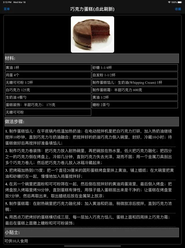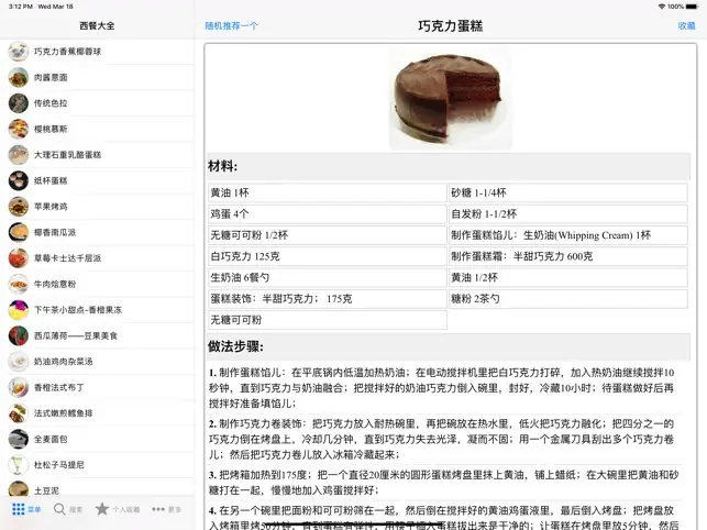 Native iOS interface, perfectly adapted. The most concise and refreshing collection of Western recipes, offline data, compatible with all devices. One-tap favorites, shake to randomly select a recipe, supports full-text search. ◆ Rich offline data package, download once, no additional data charges ◆ Detailed recipe information, clear step-by-step instructions ◆ One-tap favorite, view anytime, supports gesture swiping for navigation ◆ Full-text search, type in ingredients or cooking methods to instantly find relevant recipes