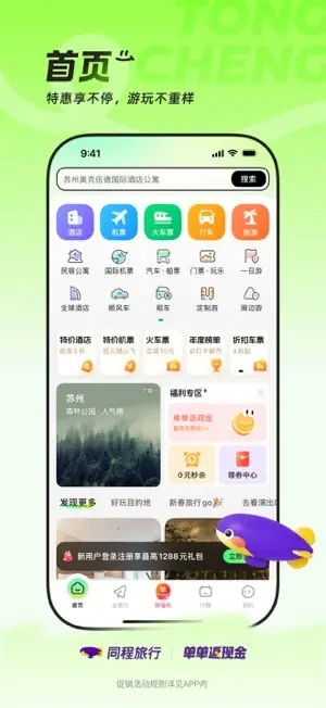 1. New User Gift: New users of the Tongcheng Travel app can claim a generous welcome gift within the app, including exclusive coupons for domestic flights, train tickets, hotels, attraction tickets, bus tickets, and ride-hailing services. Claim your coupons before placing orders for greater savings—details subject to activity rules.