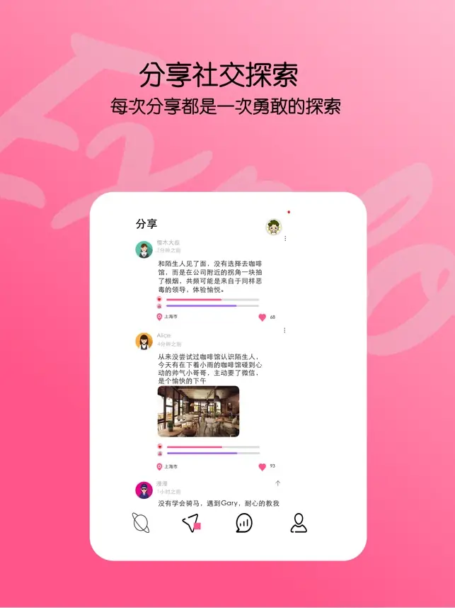 There's a social mode where you discover the people you're looking for through exploration. Socializing isn't just about romance—we aim to offer more diverse ways of connecting, helping you find all kinds of roles in life: lovers, friends, friends with benefits, 'almost lovers,' or anyone else worth exploring.
