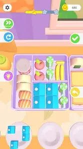 Compared to other organization games, "Packing Bento: Organization Game" is easy to access and comfortable to play. You can freely place various foods across the bento box compartments, allowing you to enjoy the ASMR experience even without strict planning 🎉. However, as you progress, the difficulty gradually increases, demanding continuous improvement in your bento organization skills.